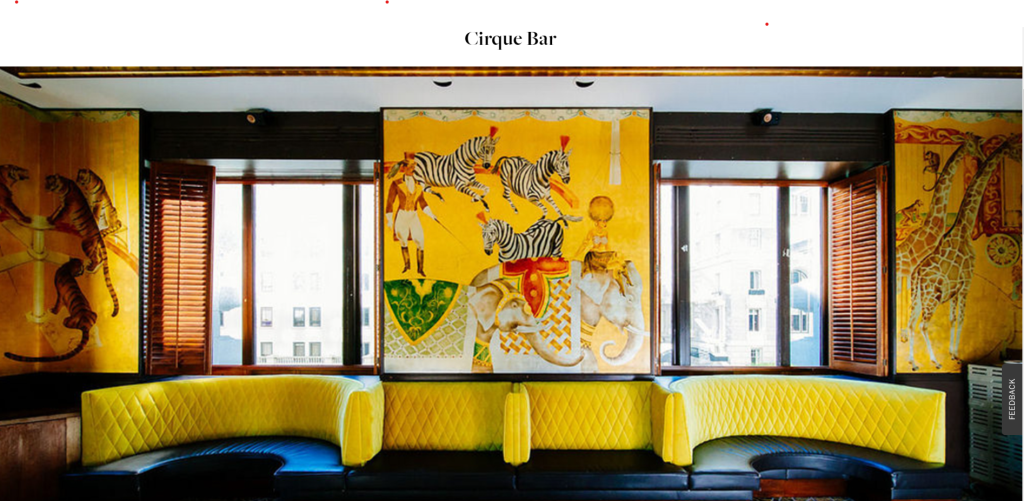 The Cirque Bar formerly was the cocktail bar and lounge at the old hotel. It is lavish. Much too lavish to be used as just a coffee bar. The furniture is art deco and the walls are covered in a saintly golden yellow mural that features circus animals.