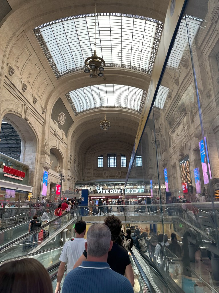 If you’ve never been, Milano Centrale is a massive station. There are twenty-four platforms with trains outbound for every major city in Italy and beyond. It feels like a combination racetrack and refugee camp. Hordes of people either weaving their way through the crowds with massive suitcases or staring up at the digital boards transfixed, desperately trying to figure out which track their train is departing from.